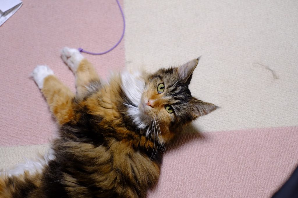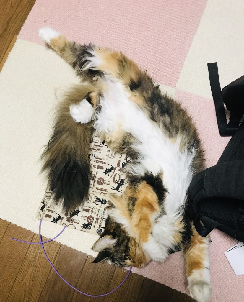 嬉しいとかイライラしてるとか楽しいとか怖いとか、きもちをしっぽで表現するので、お顔だけじっとみていても今の気分はわかりません。名前を呼ぶとしっぽの先だけでお返事することがあります。