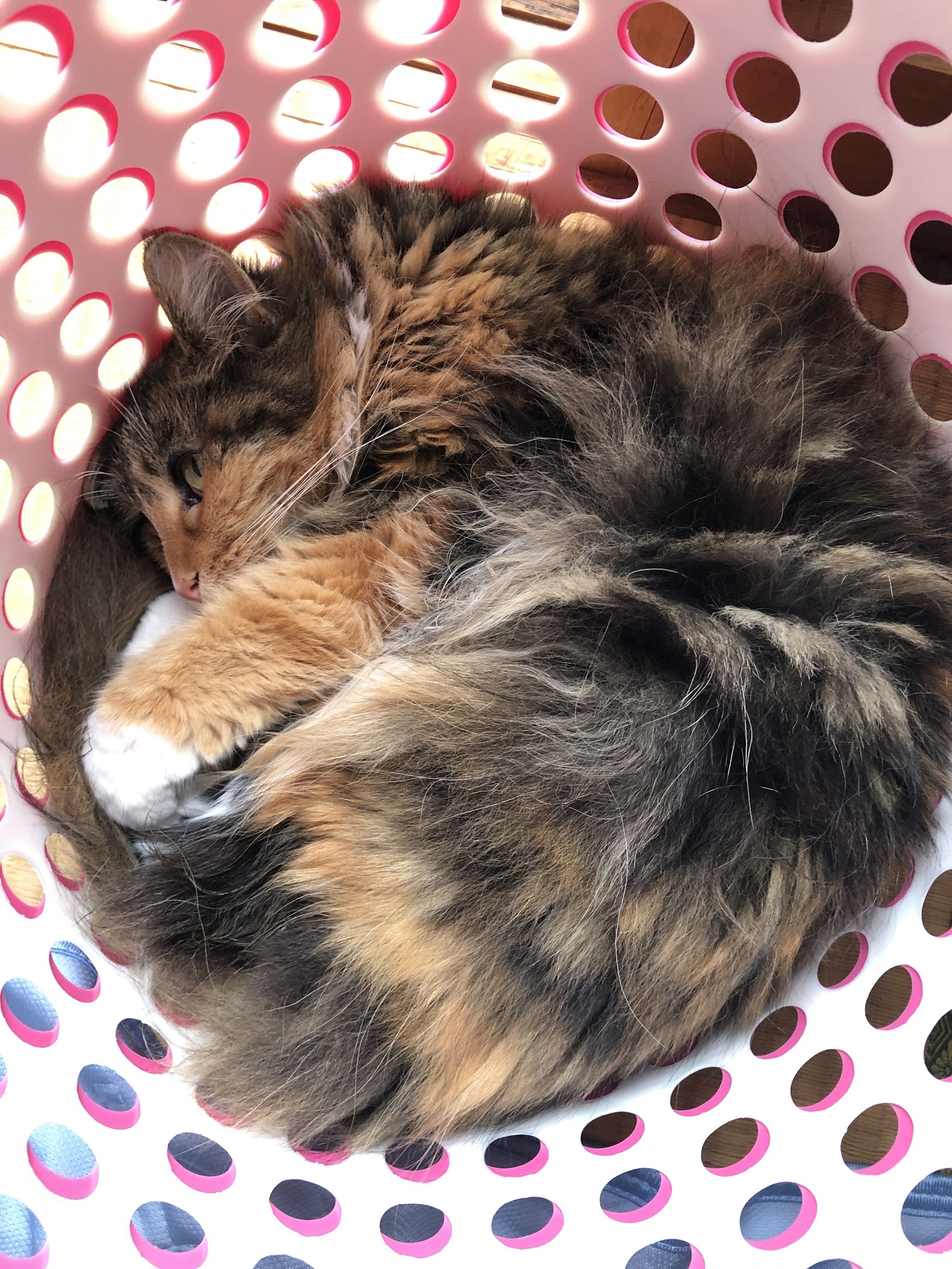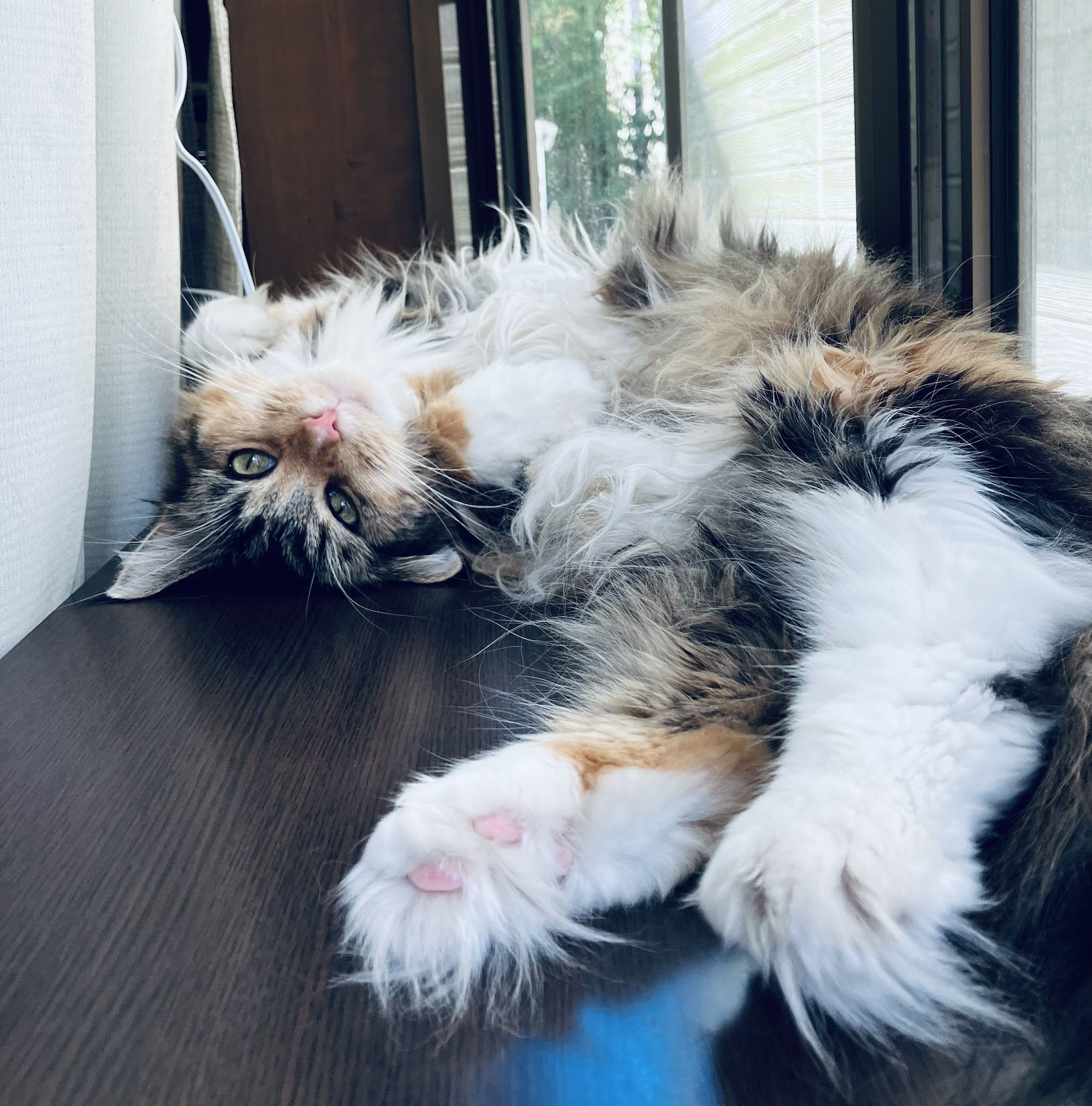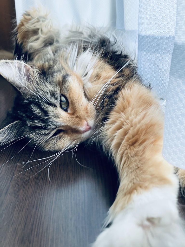 みりんちゃんはメインクーンで長毛種ですが、とても寒がりさんです。むしろ暑さに強くて、夏の猛暑日でも部屋の中でいちばん暑くなる出窓で過ごすことが多かったです。